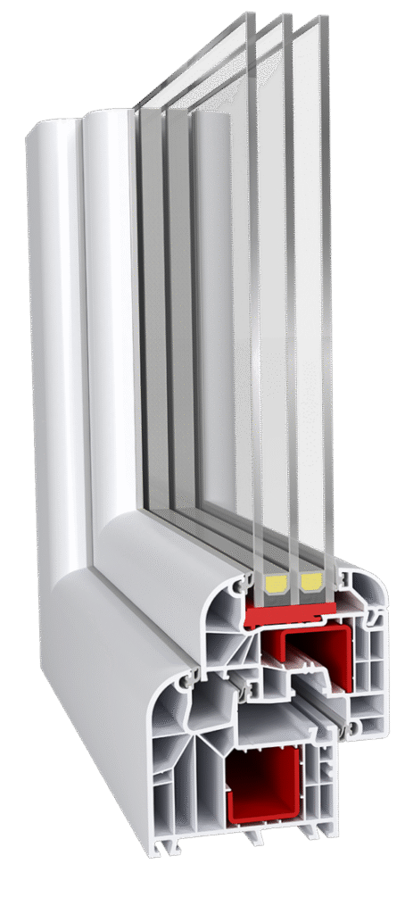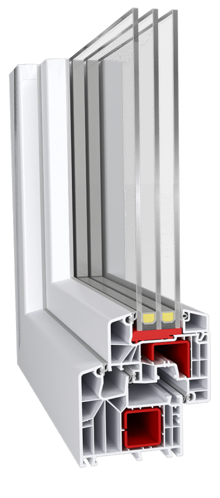 • Stahlverstärkungen im Profilinneren sorgen für Stabilität selbst bei großdimensionierten Fenstern