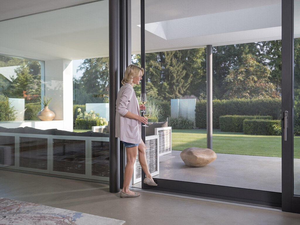 Unsere Schiebetüren mit angenehm gestalteten Profilkonturen und hochtransparentem Gewebe sind ein echter Hingucker – sofern Ihre Gäste den Insektenschutz überhaupt bemerken. Laufruhe, Leichtgängigkeit und eine intuitive Bedienung zeichnen unsere Schiebesysteme aus. Mit der integrierten Griffnut kann der Flügel in jeder Angriffshöhe geöffnet werden, dies ist auch ideal für Kinder. Mit dem im Standard verbauten Schließbeschlag arretiert Ihr Flügel sanft in Endposition. Unsere Gewebe zeichnen sich durch hohe Durchsicht bei geprüfter Langlebigkeit aus – überzeugen Sie sich.