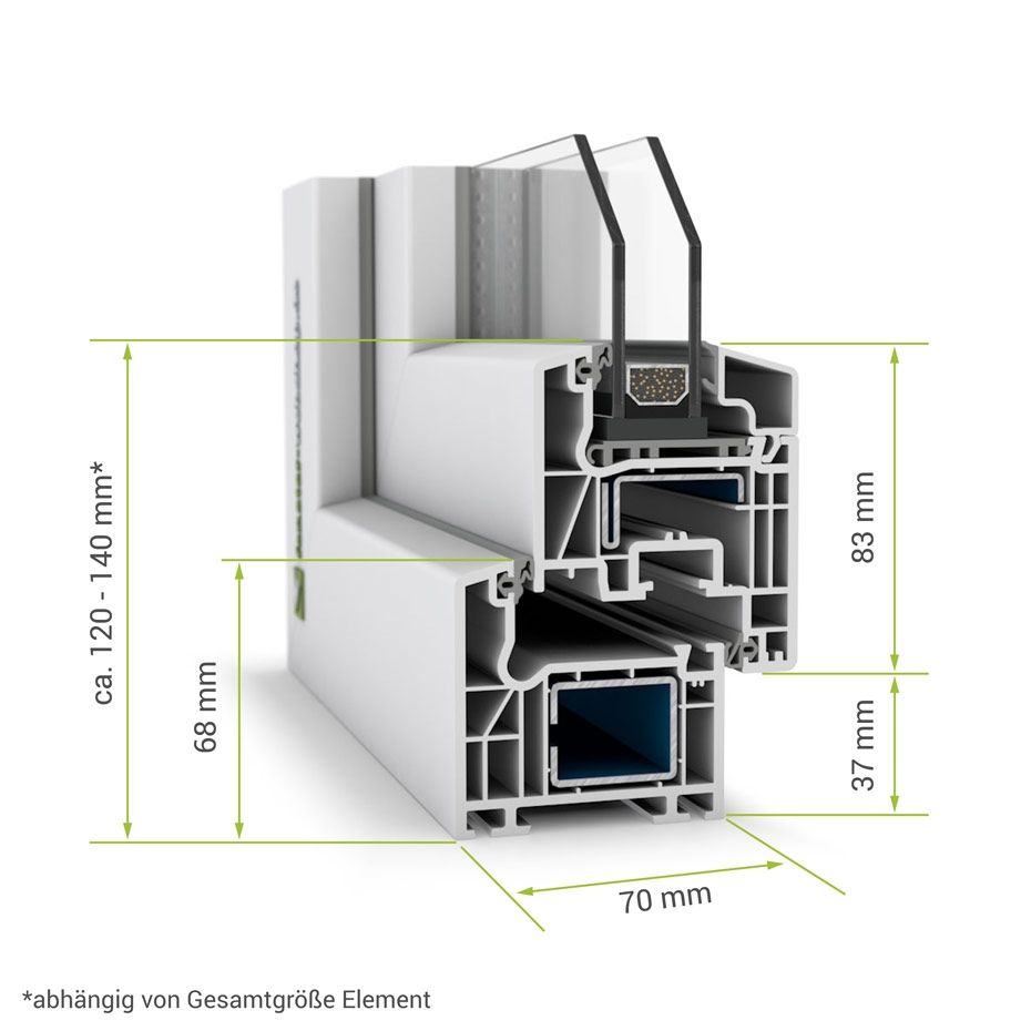 • Unterschiedliche Verstärkungsprofile im Blend- und Flügelrahmen sorgen je nach statischer Anforderung für höchste Stabilität und Langlebigkeit