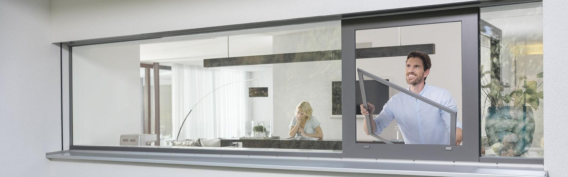 Unsere Spannrahmen sind die erste Wahl für Fenster und Türen, die rein zum Lüften geöffnet werden. Der große Vorteil: unsere Montage erfolgt in der Regel ohne Bohren.
