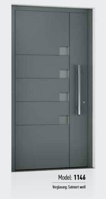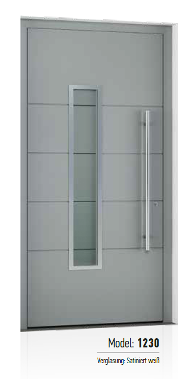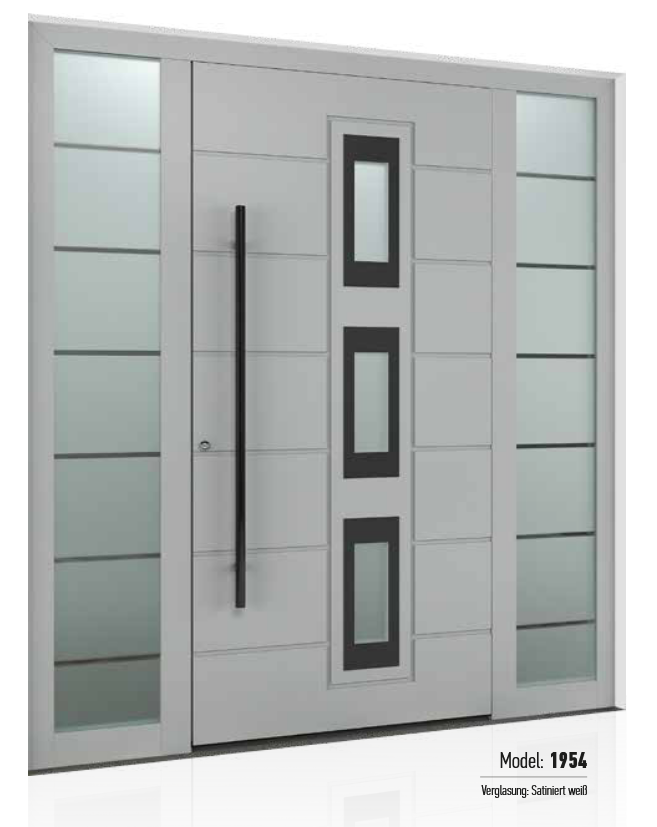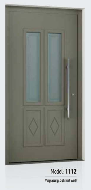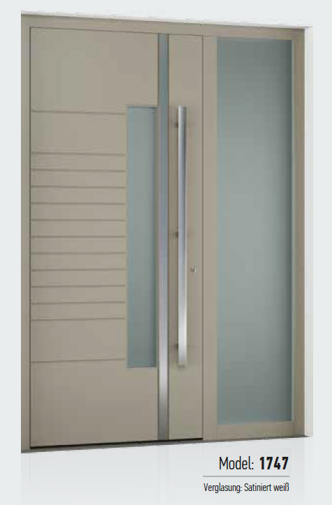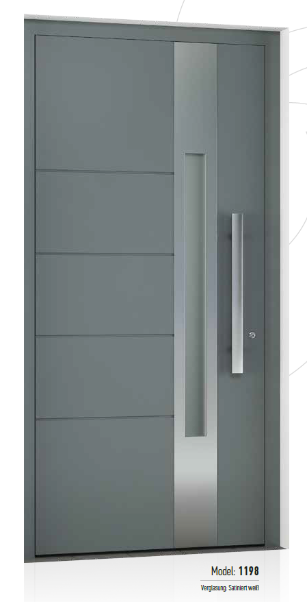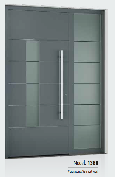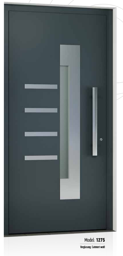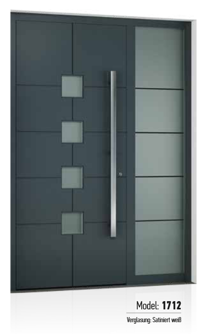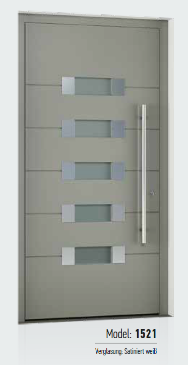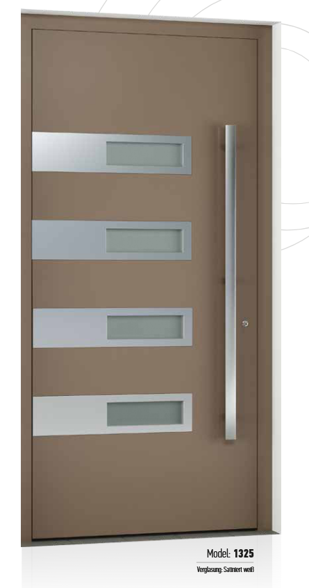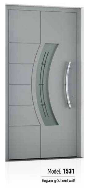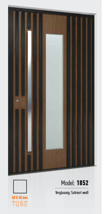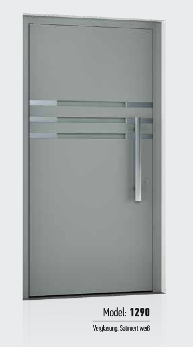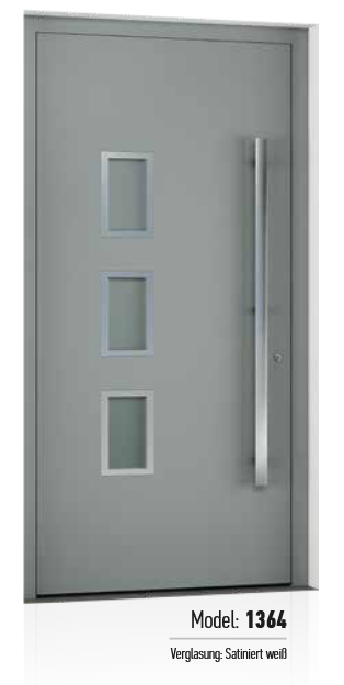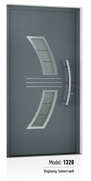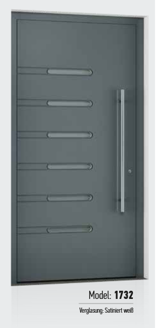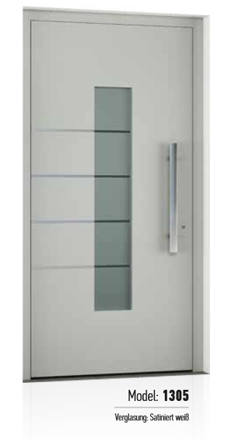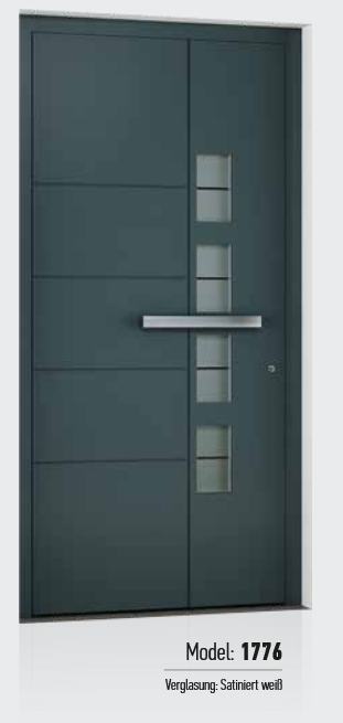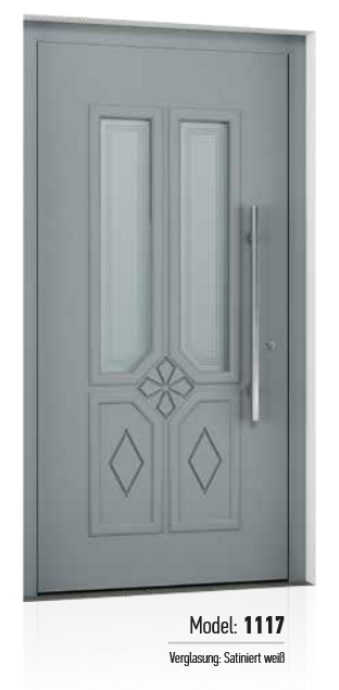 Verglasung: 3-fach satinato; Die Anzahl der Dekorstangen nimmt je nach breite der Tür zu und ab