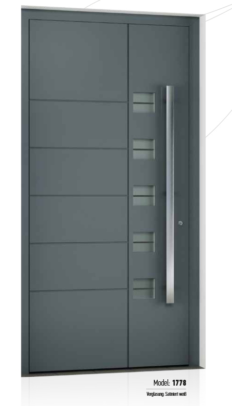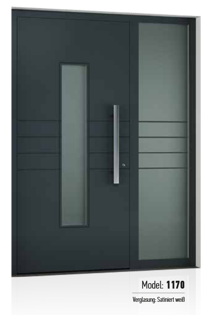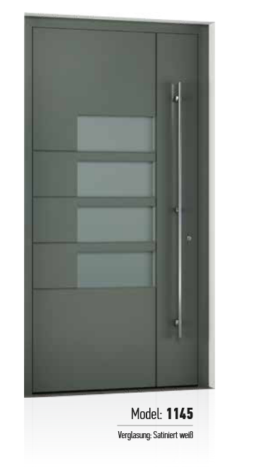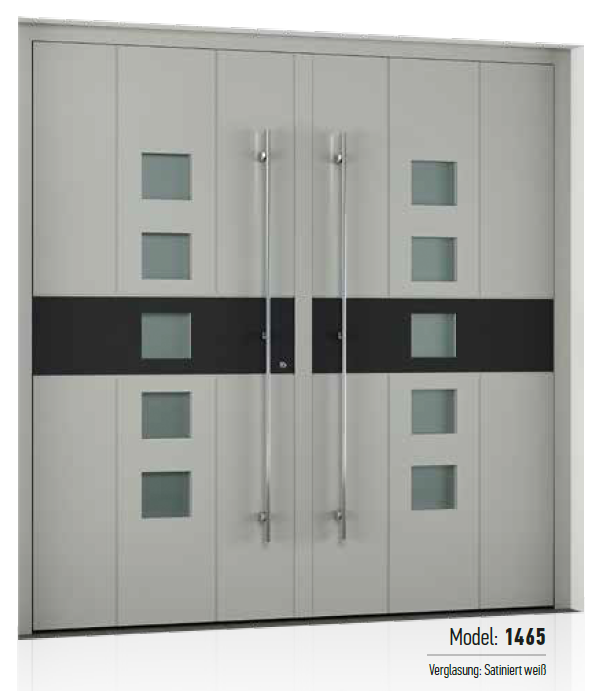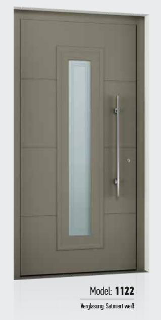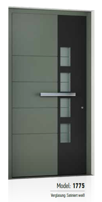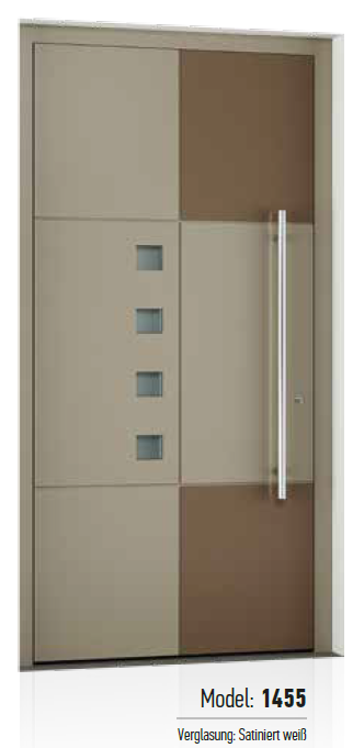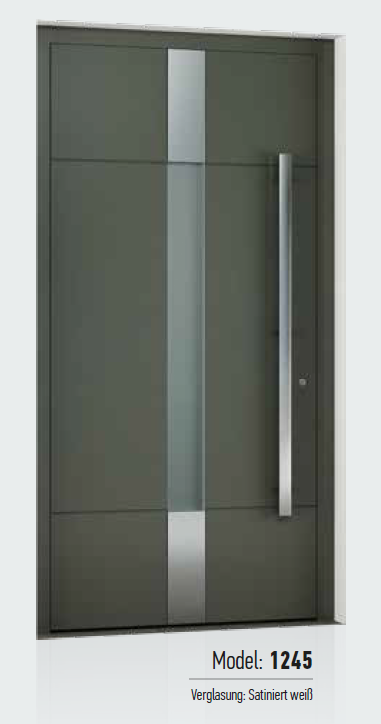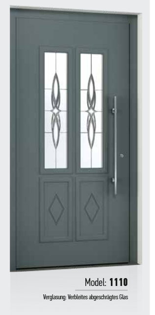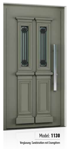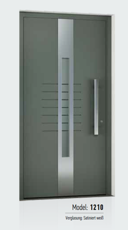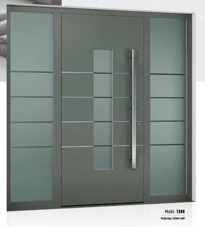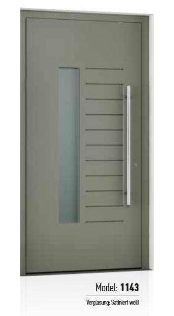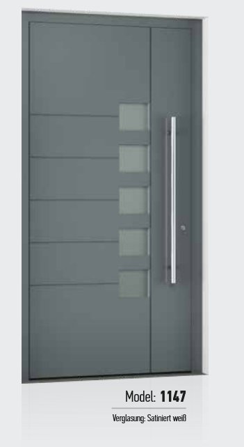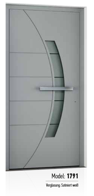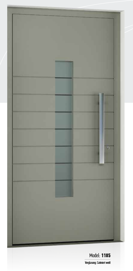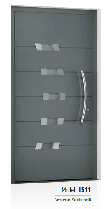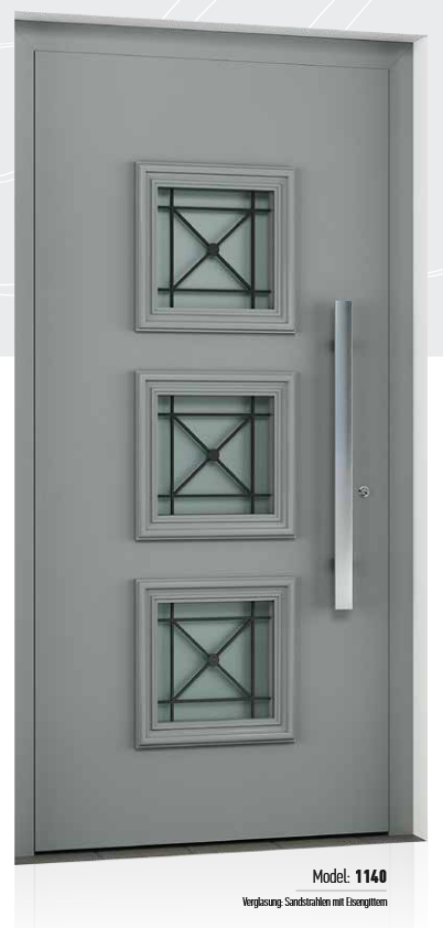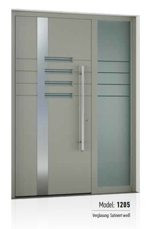 Verglasung: 3-fach satinato; Die Anzahl der Dekorstangen nimmt je nach breite der Tür zu und ab