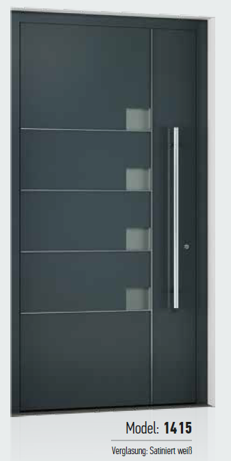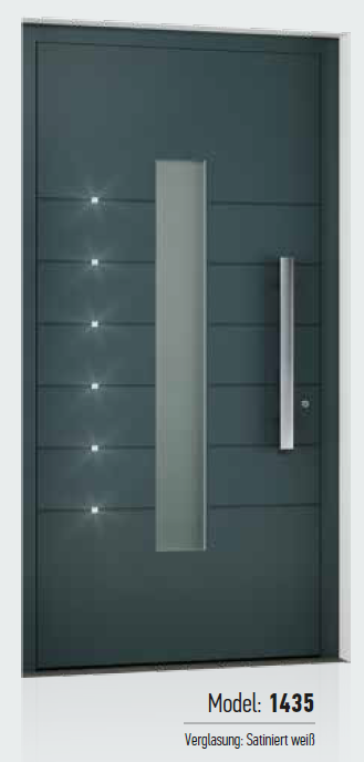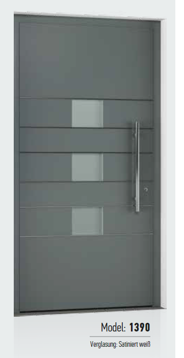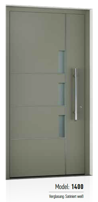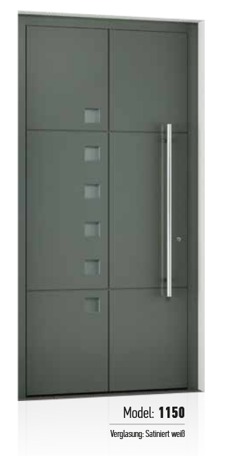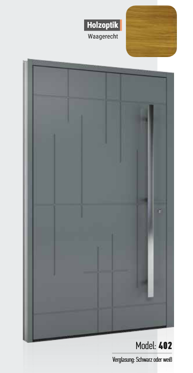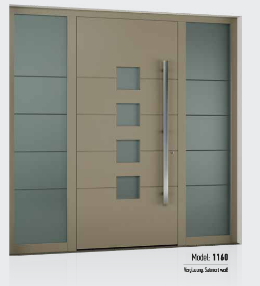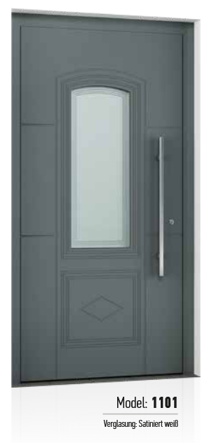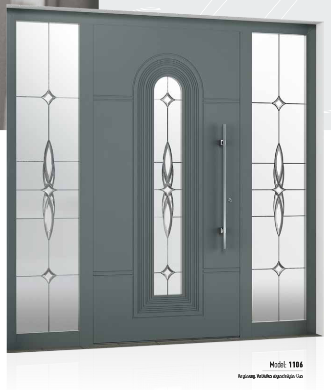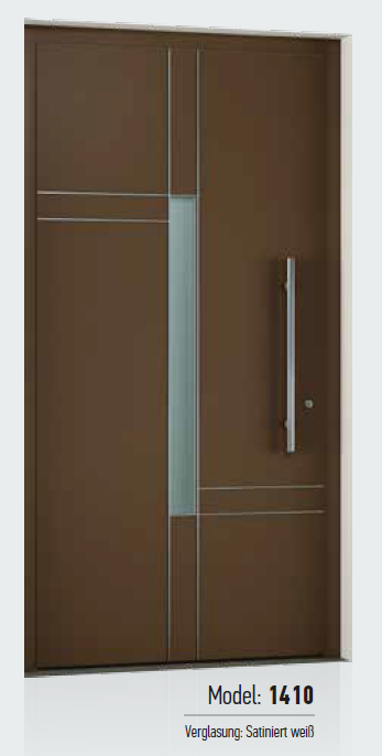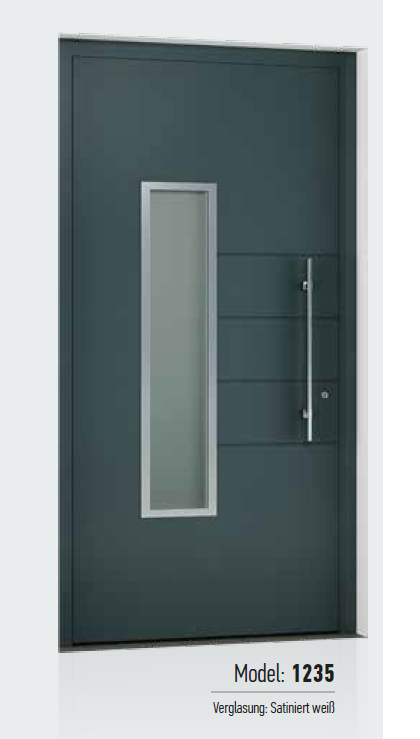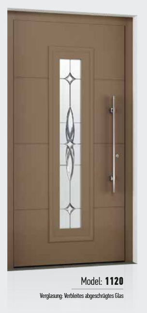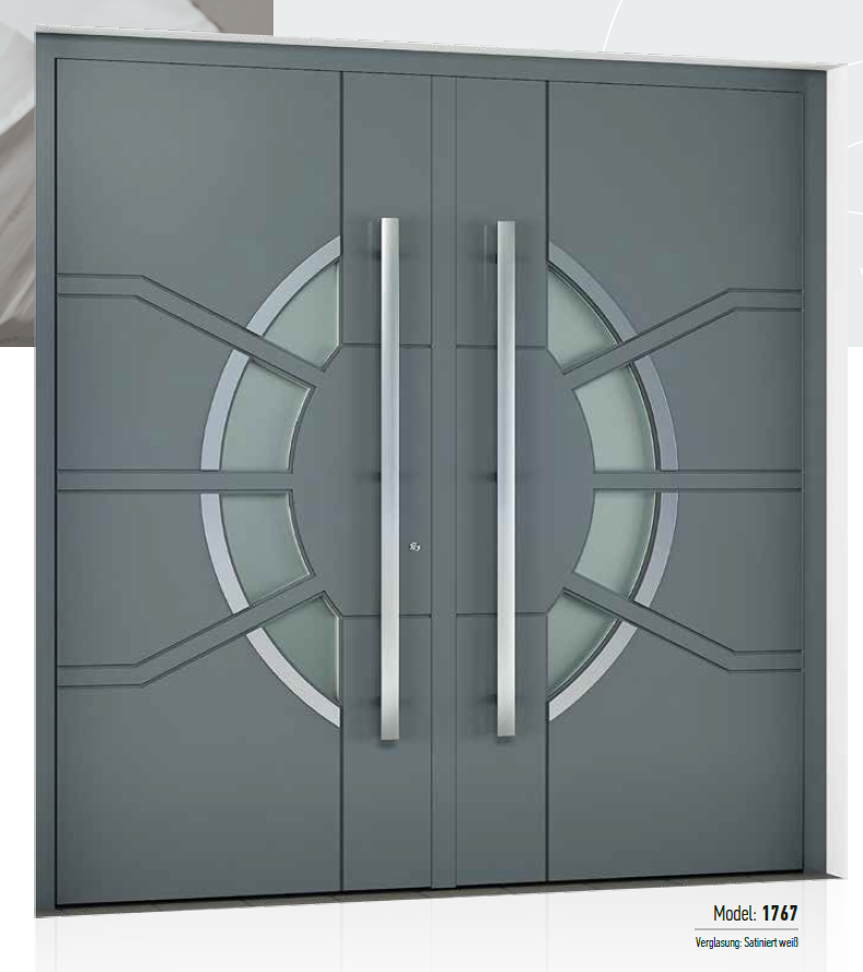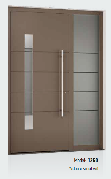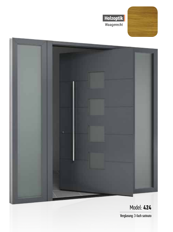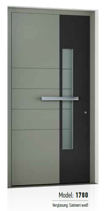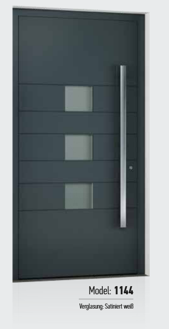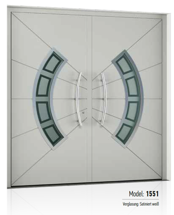 Verglasung: 3-fach satinato; Die Anzahl der Dekorstangen nimmt je nach breite der Tür zu und ab