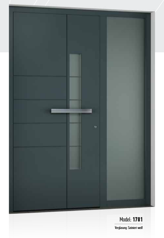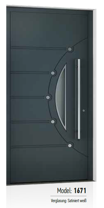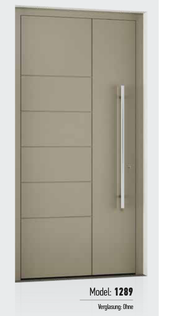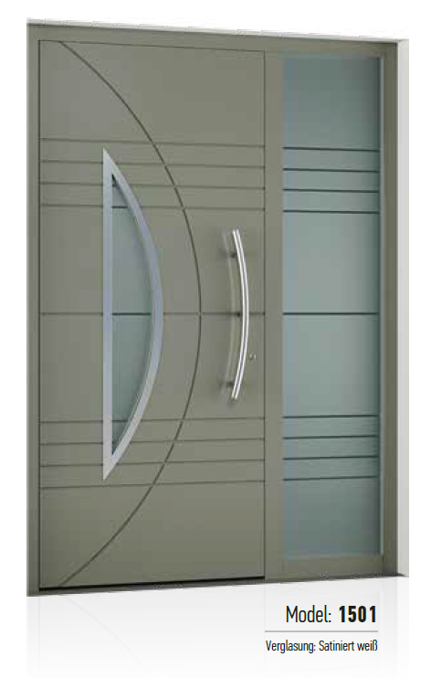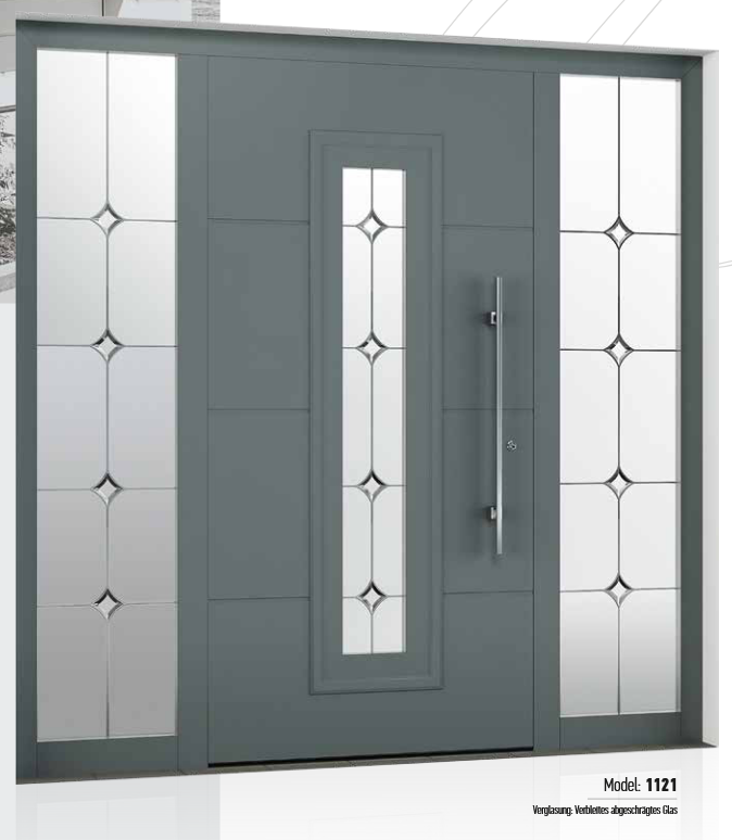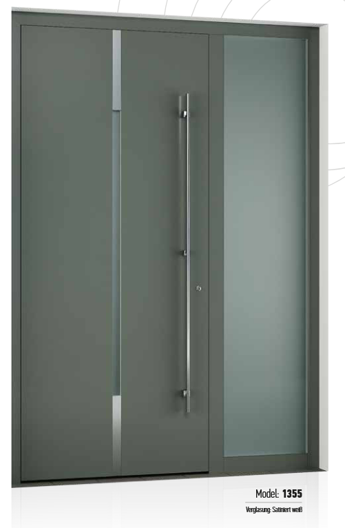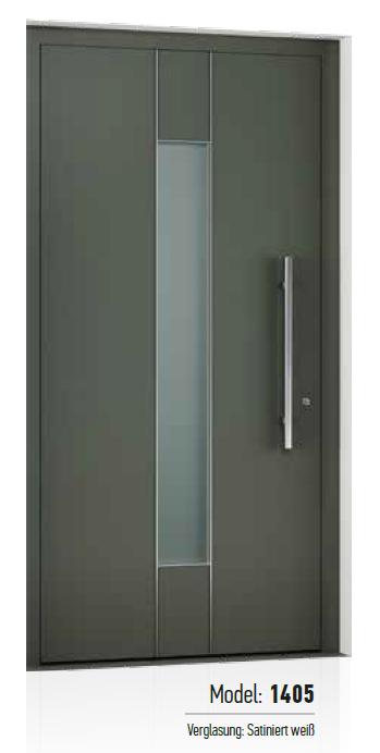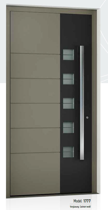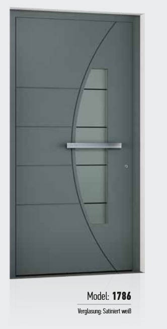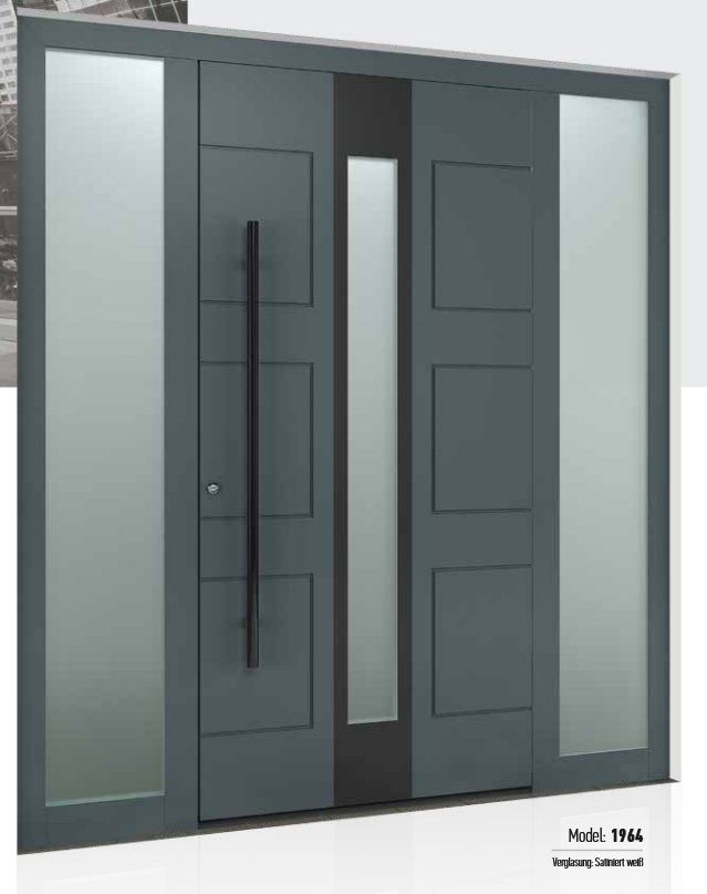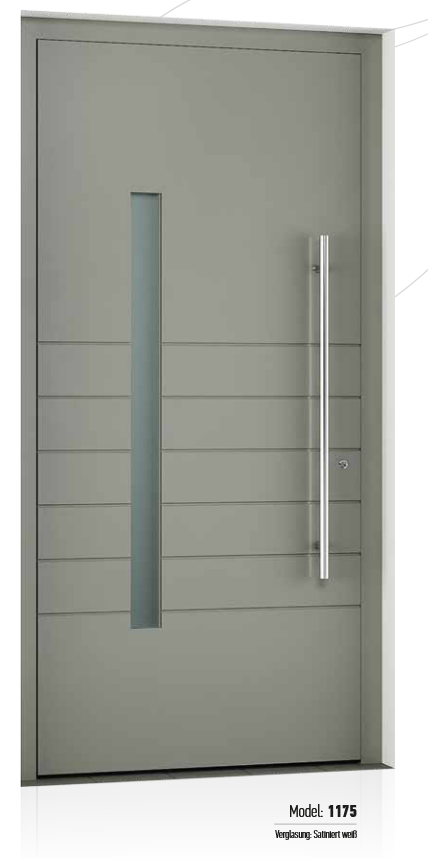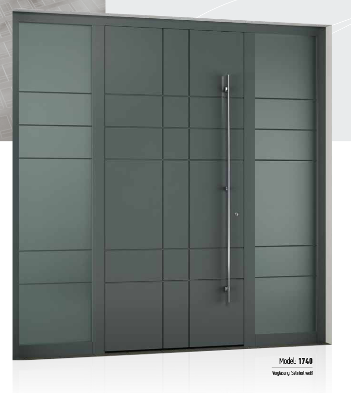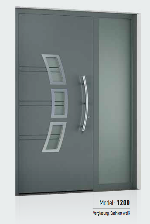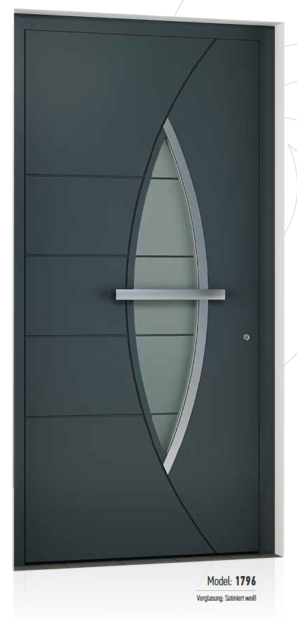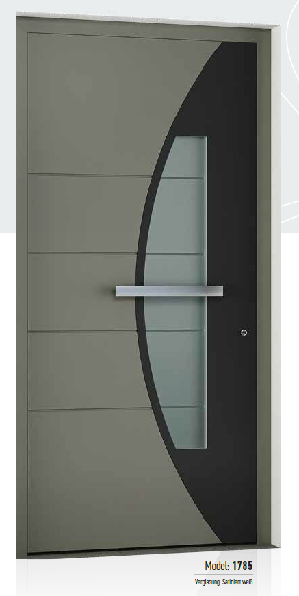 Verglasung: 3-fach satinato; Die Anzahl der Dekorstangen nimmt je nach breite der Tür zu und ab