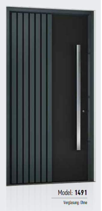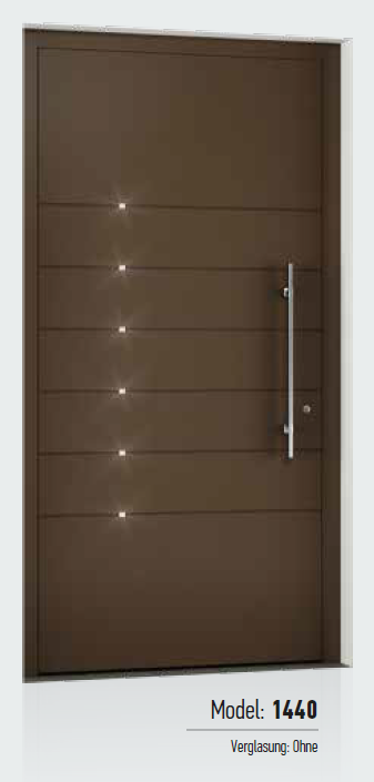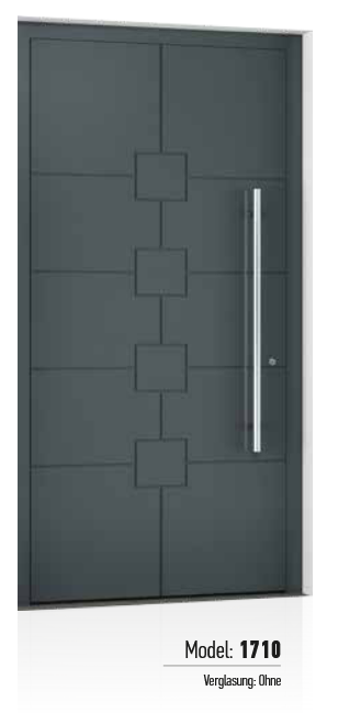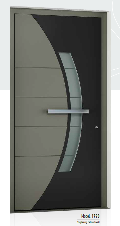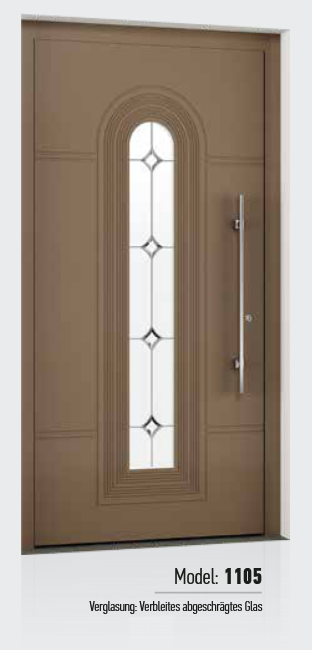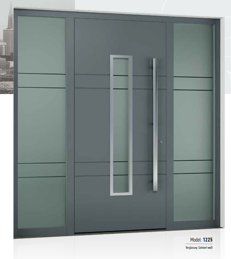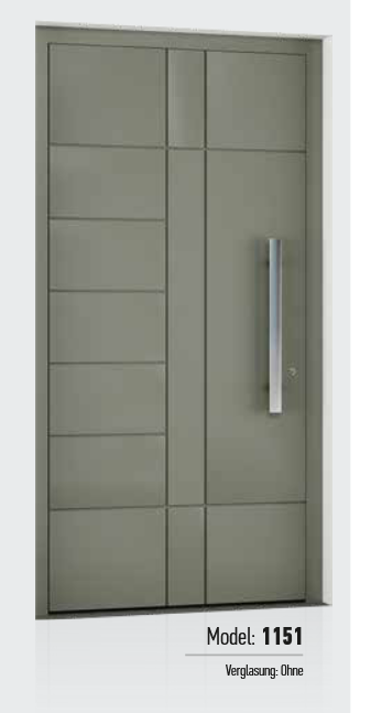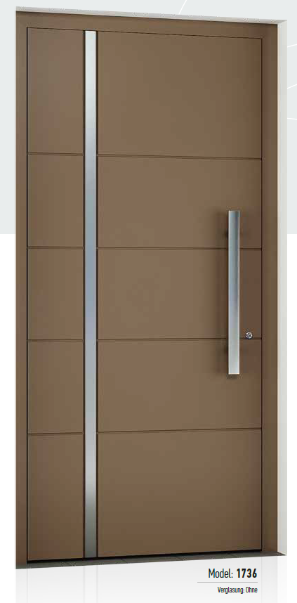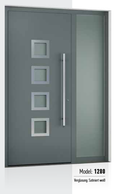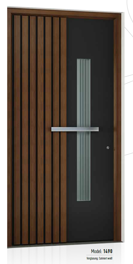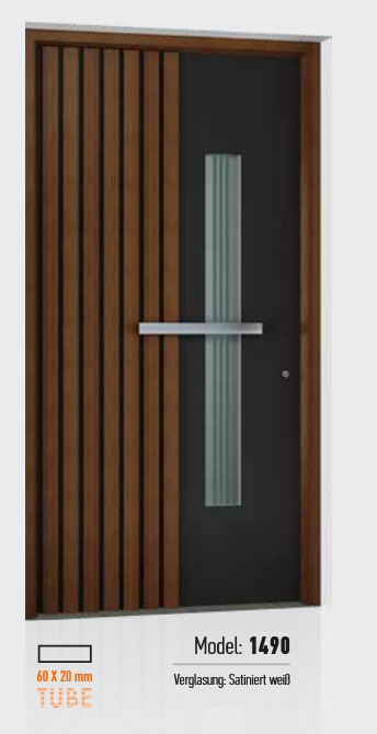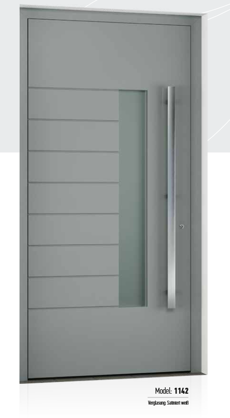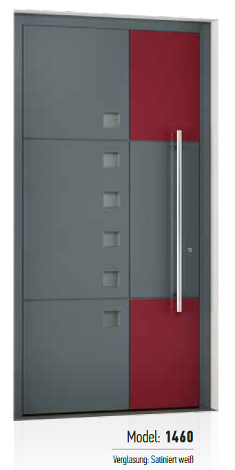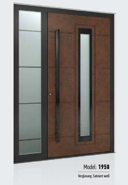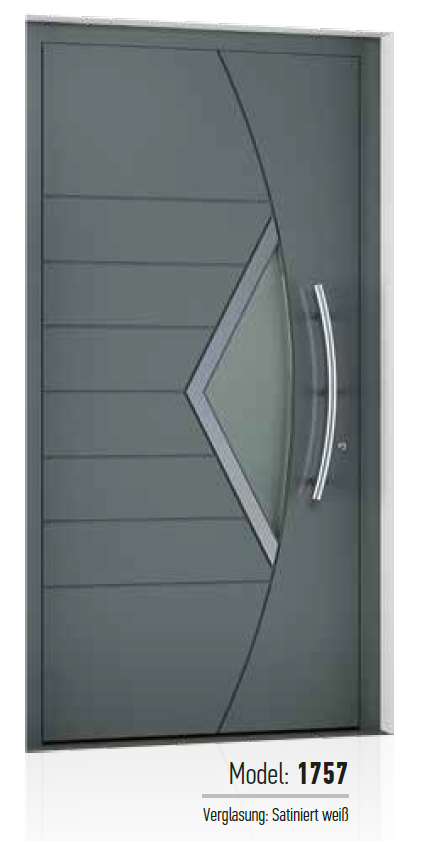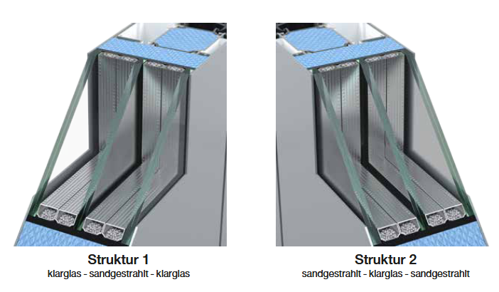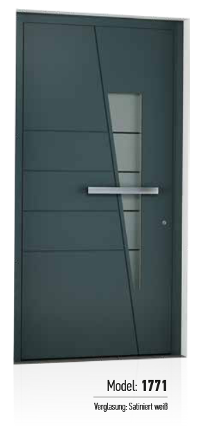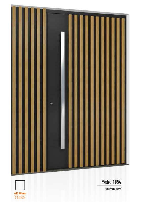 Verglasung: 3-fach satinato; Die Anzahl der Dekorstangen nimmt je nach breite der Tür zu und ab