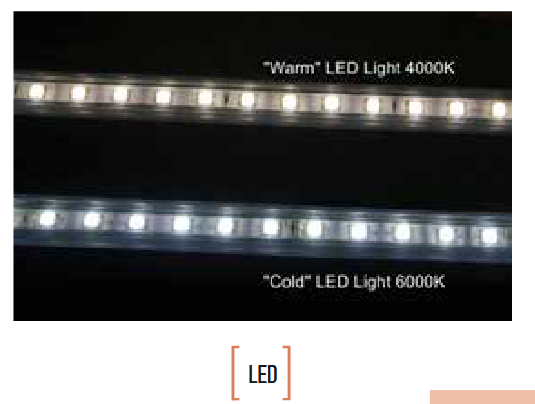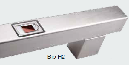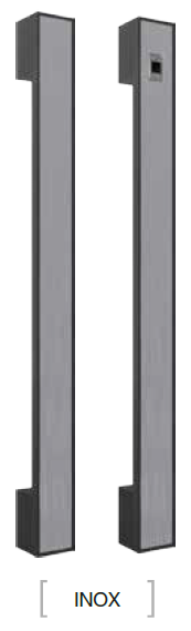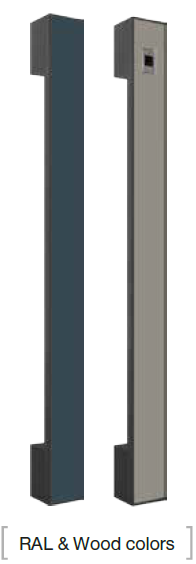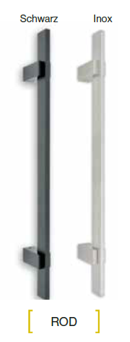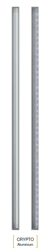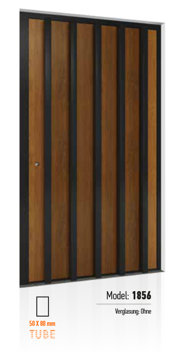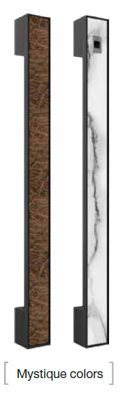 Senkrechte Stäbe in Holzton. Innenliegender ''Crypto“- Aussengriff mit LED-Beleuchtung.